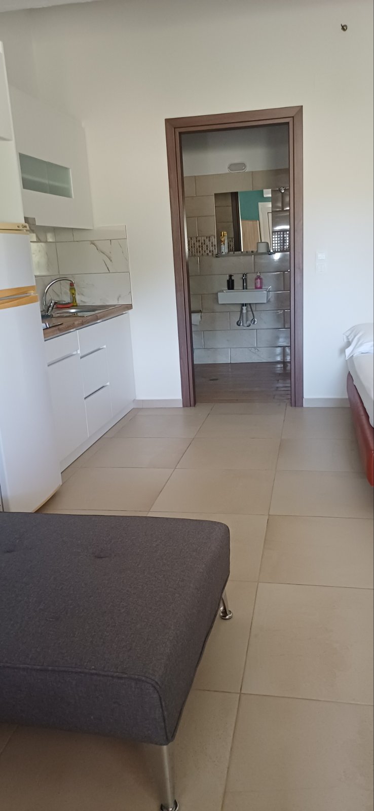 Acheron Whisper by MRS is a cozy apartment designed for two guests, nestled on a peaceful mountain slope. The space features a private balcony overlooking lush green hills and the surrounding forest, creating the perfect setting for relaxation and connection with nature. Bright, comfortable, and minimal, the apartment is ideal for couples or solo travelers seeking tranquility away from the noise of the city.