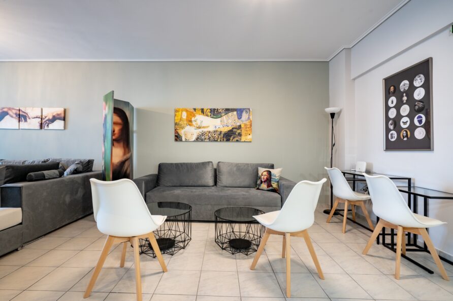 The apartment is located in the Patissia area, north of the historic center of Athens. The neighborhood provides fast access to downtown while remaining quieter and more residential. Guests can easily navigate using Google Maps or Apple Maps by searching for “Patissia, Athens”.