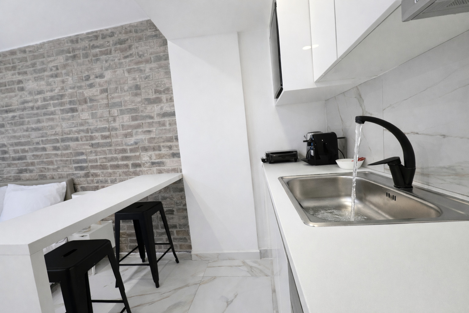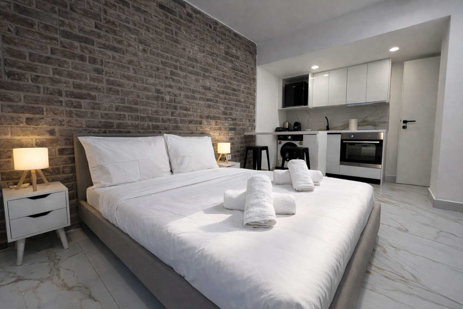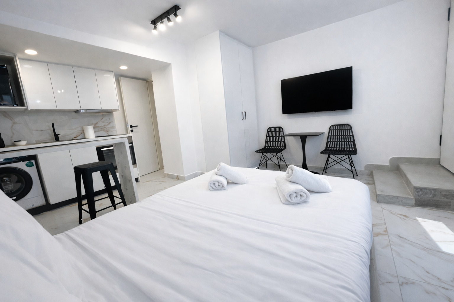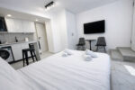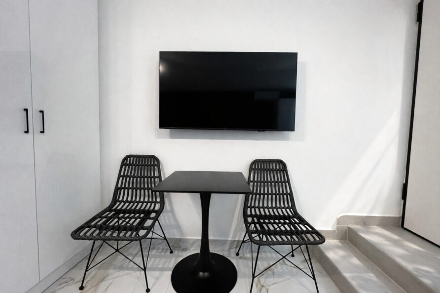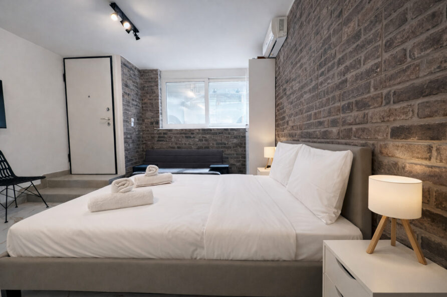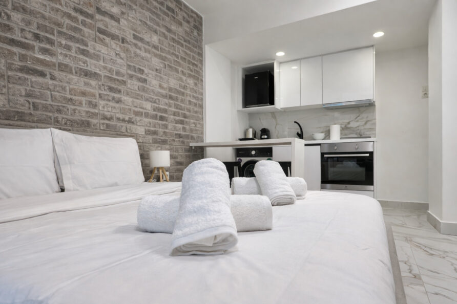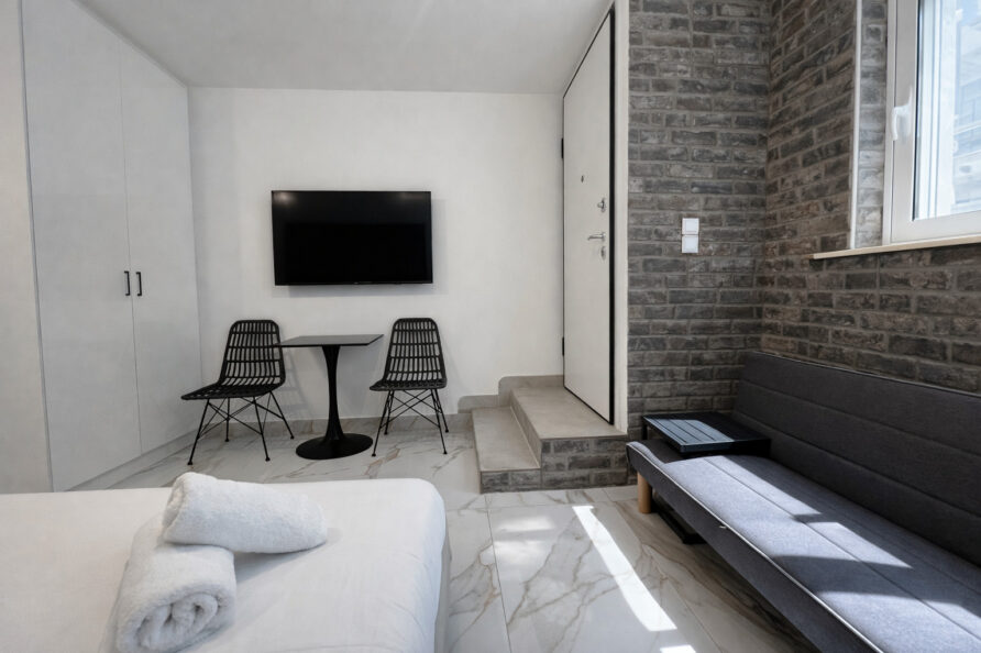 This modern studio in central Athens is ideal for up to two guests. It features a comfortable sleeping area, a sofa, a fully equipped kitchen, and a private bathroom. The space is thoughtfully designed for functionality and comfort, and also includes a washing machine, making it suitable for both short and longer stays.