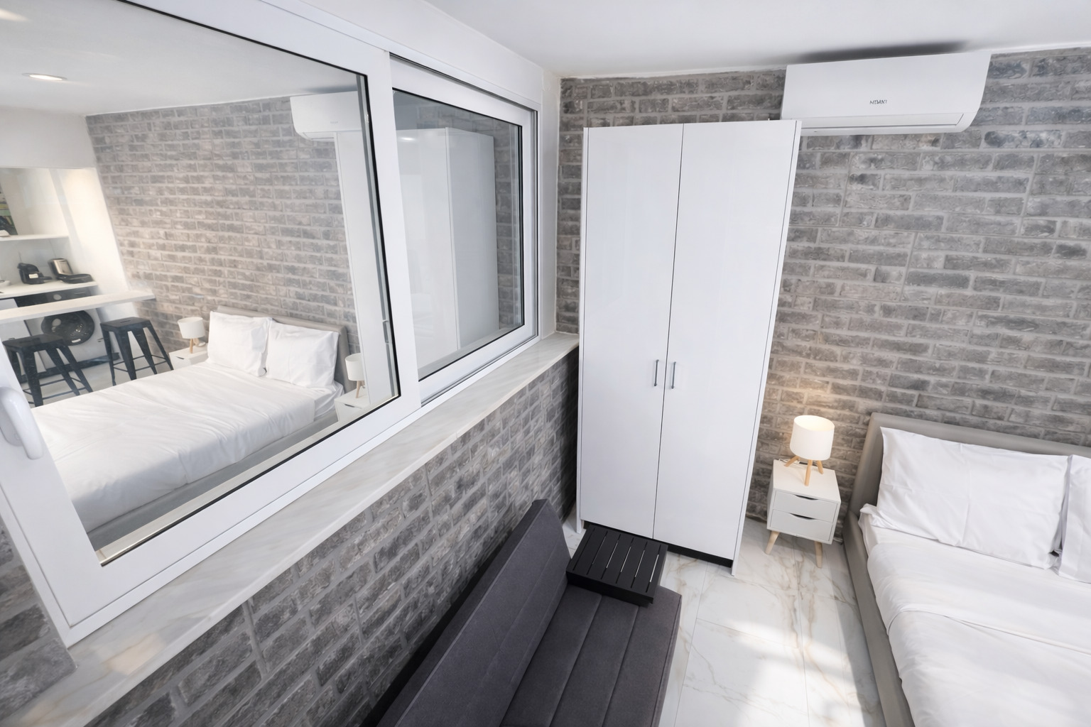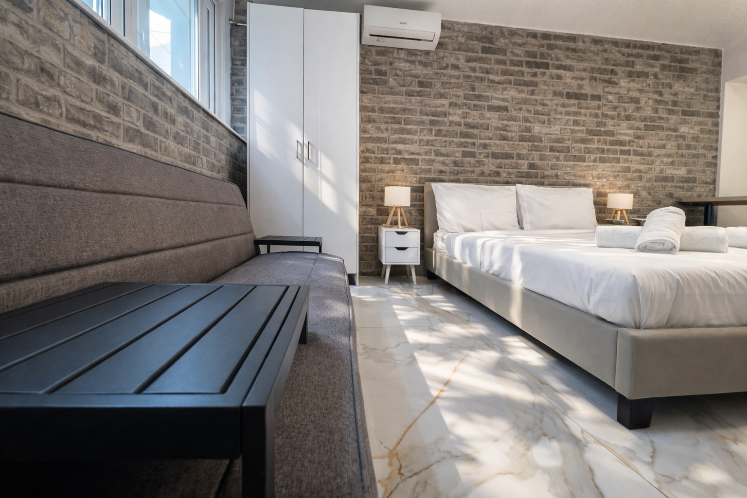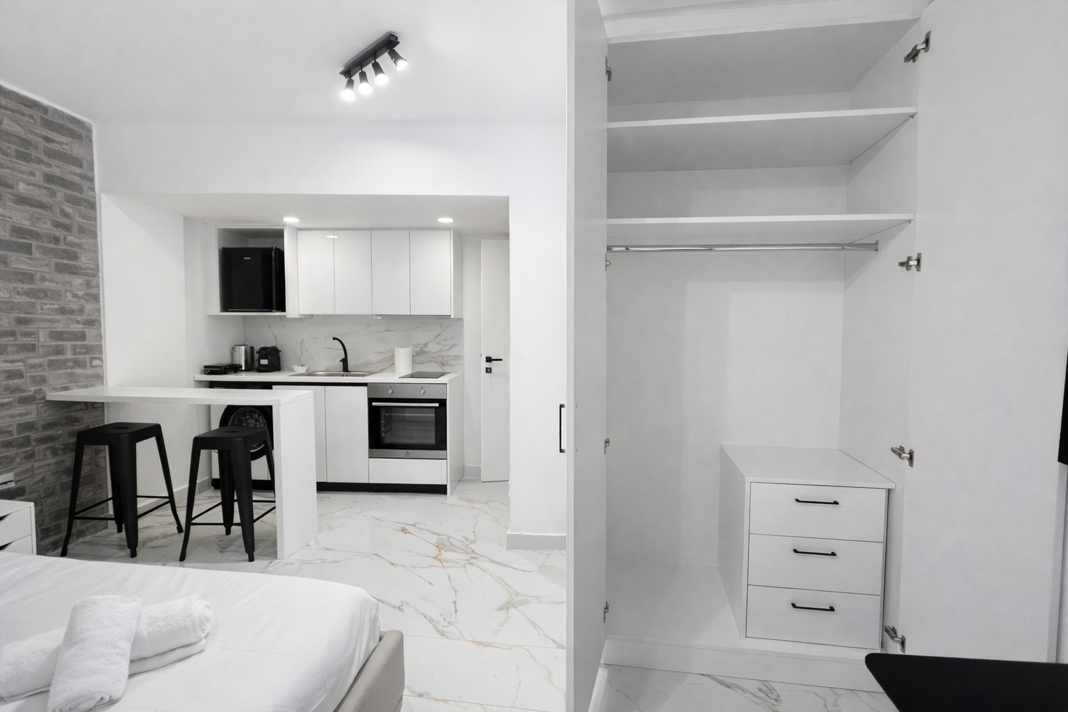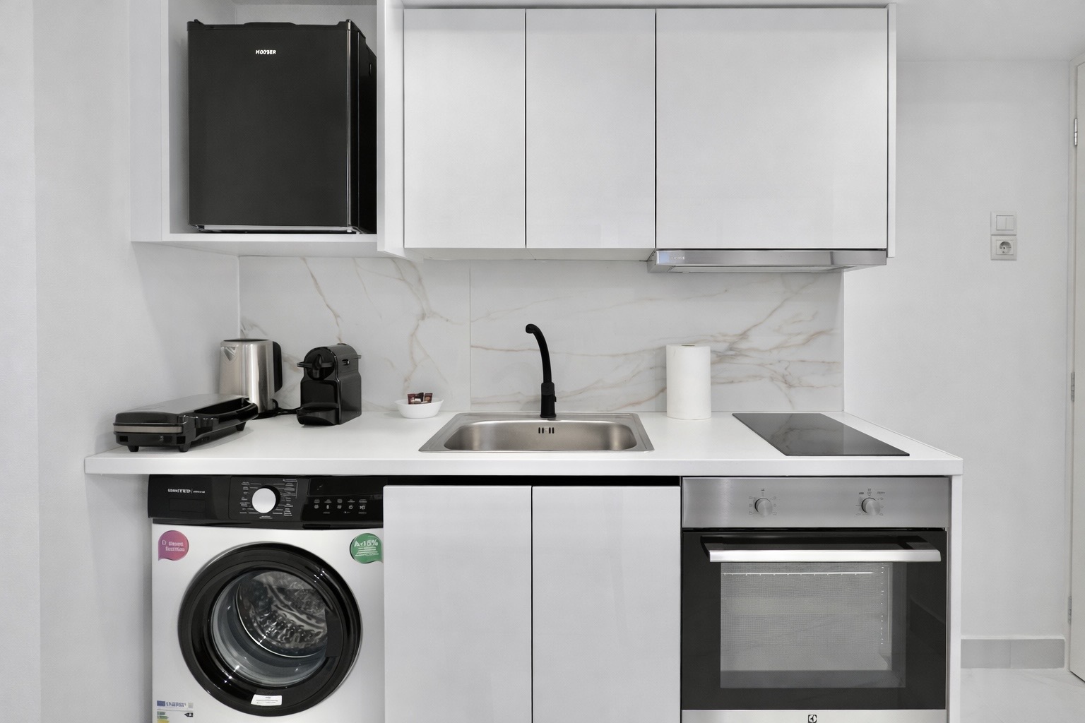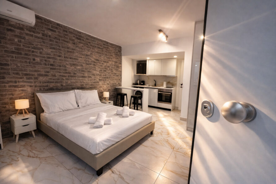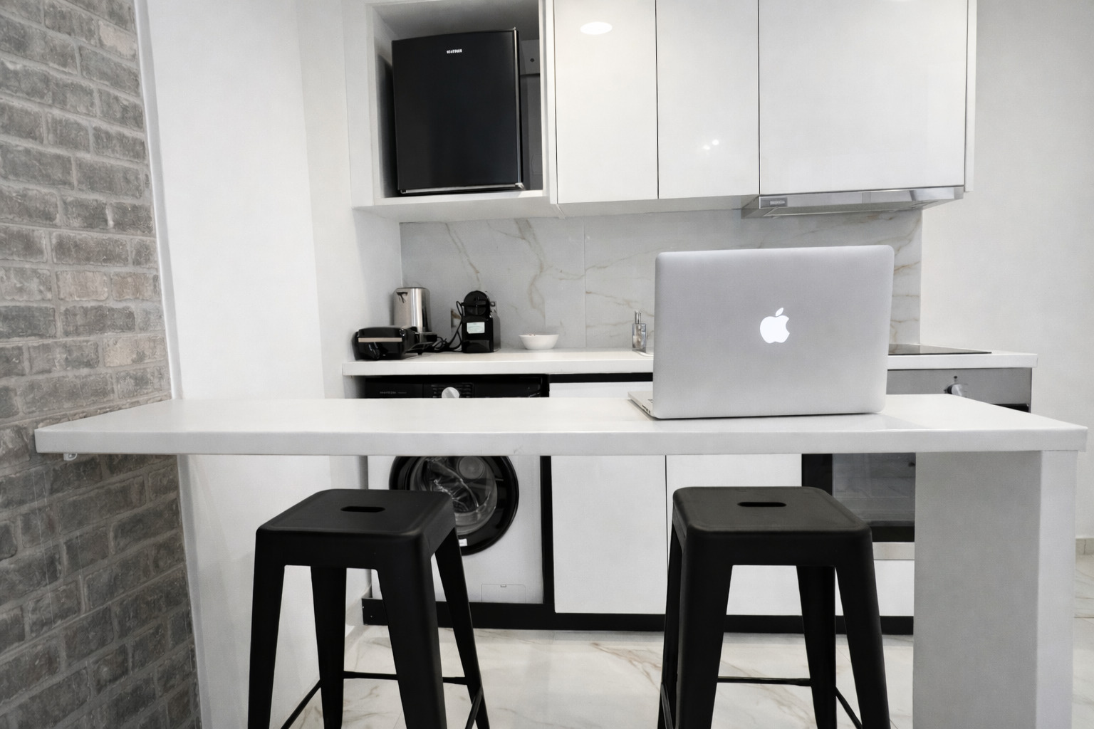 This modern studio in central Athens is ideal for up to two guests. It features a comfortable sleeping area, a sofa, a fully equipped kitchen, and a private bathroom. The space is thoughtfully designed for functionality and comfort, and also includes a washing machine, making it suitable for both short and longer stays.