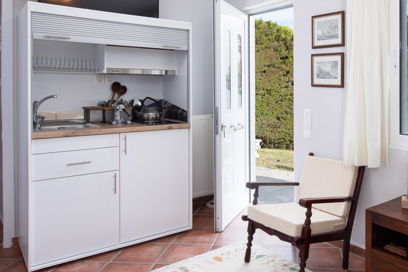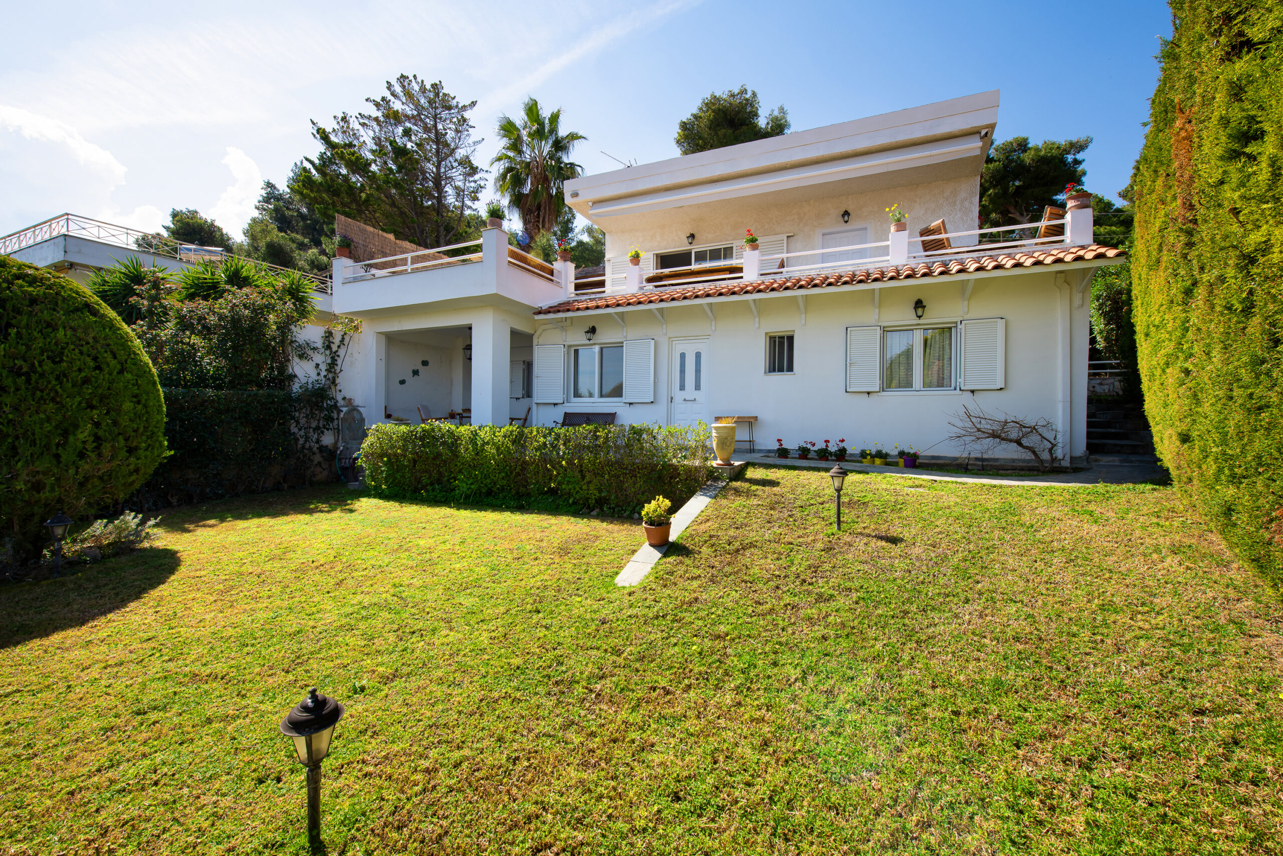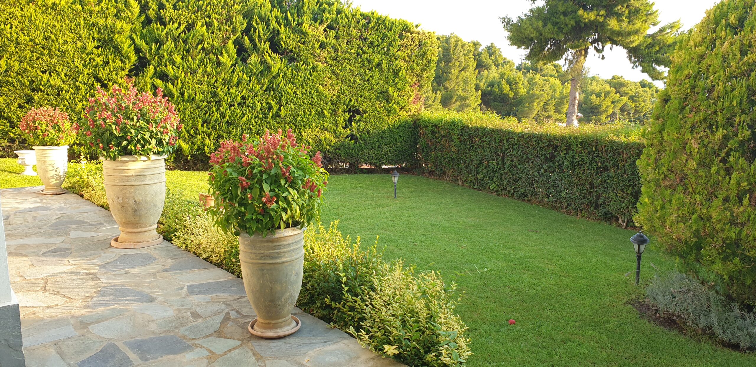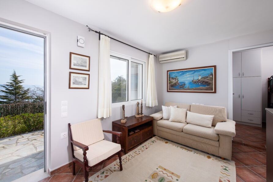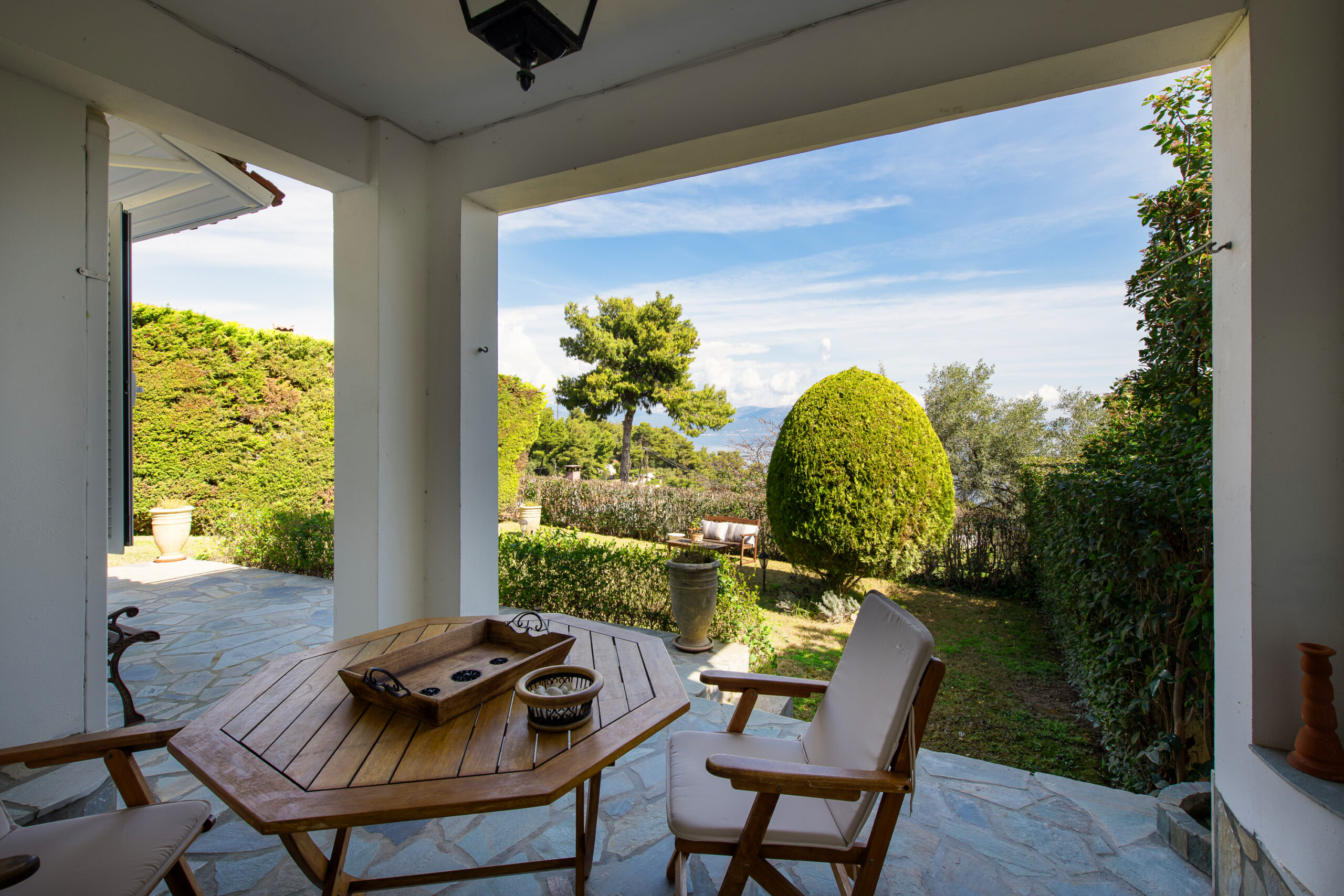 The SeaBreeze House is located in the same building, directly below the Villa. It includes a lush green lawn garden, a spacious stone-built veranda, and a covered outdoor dining area, all fully private and separated from the rest of the property.