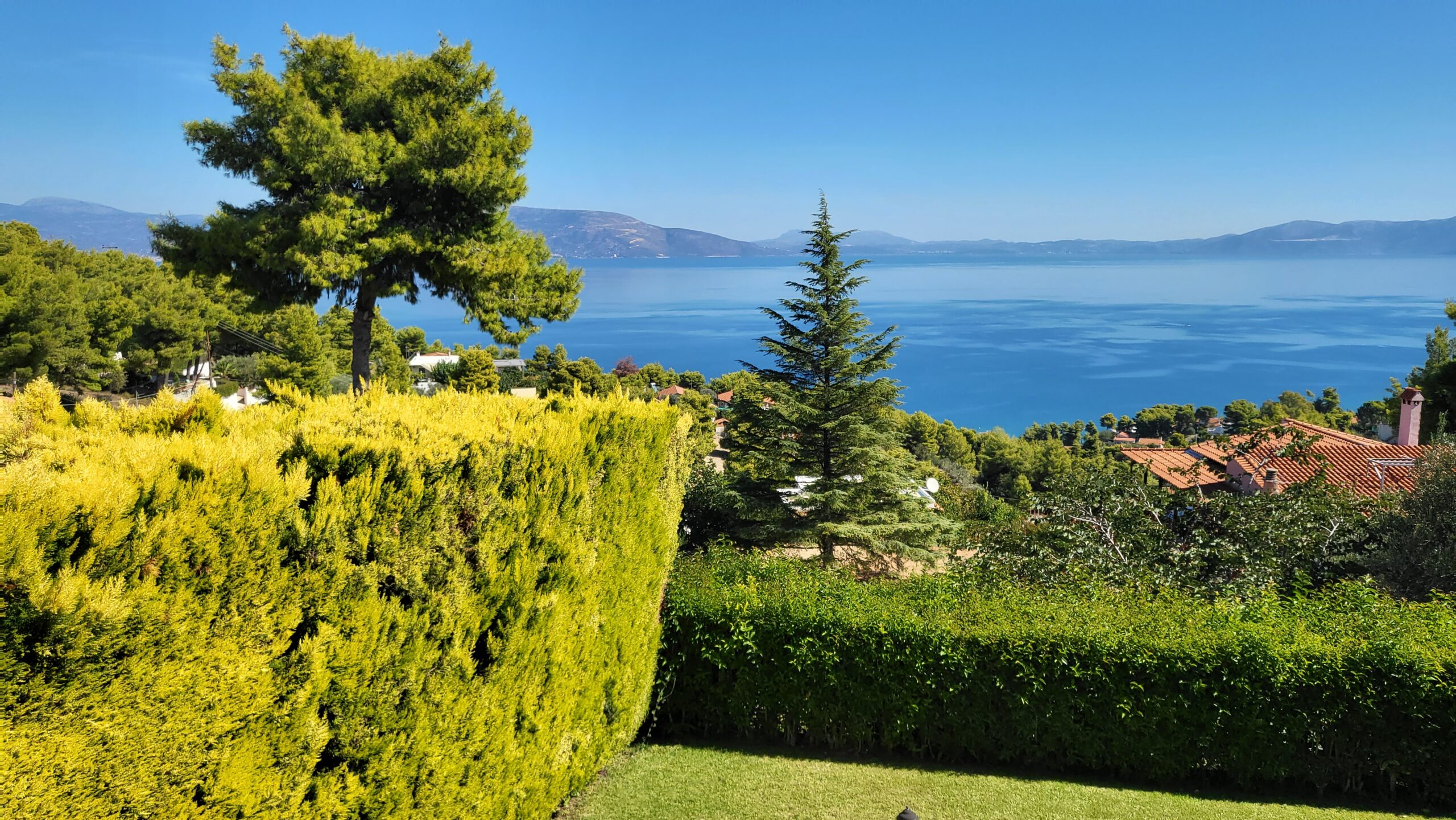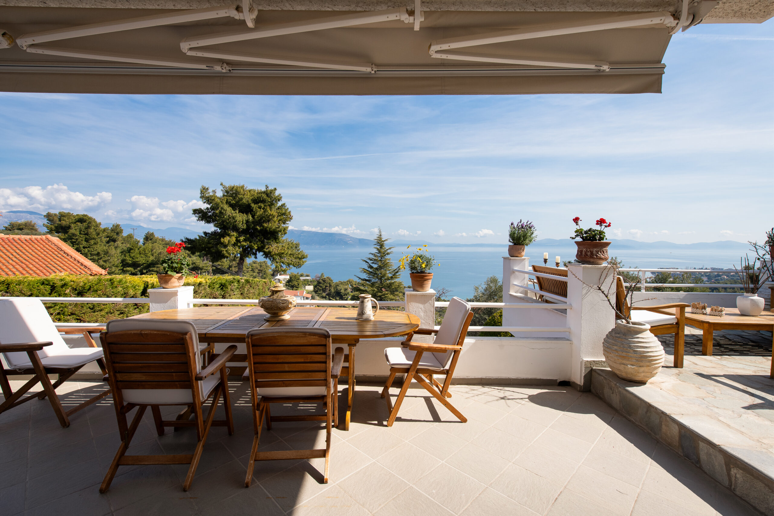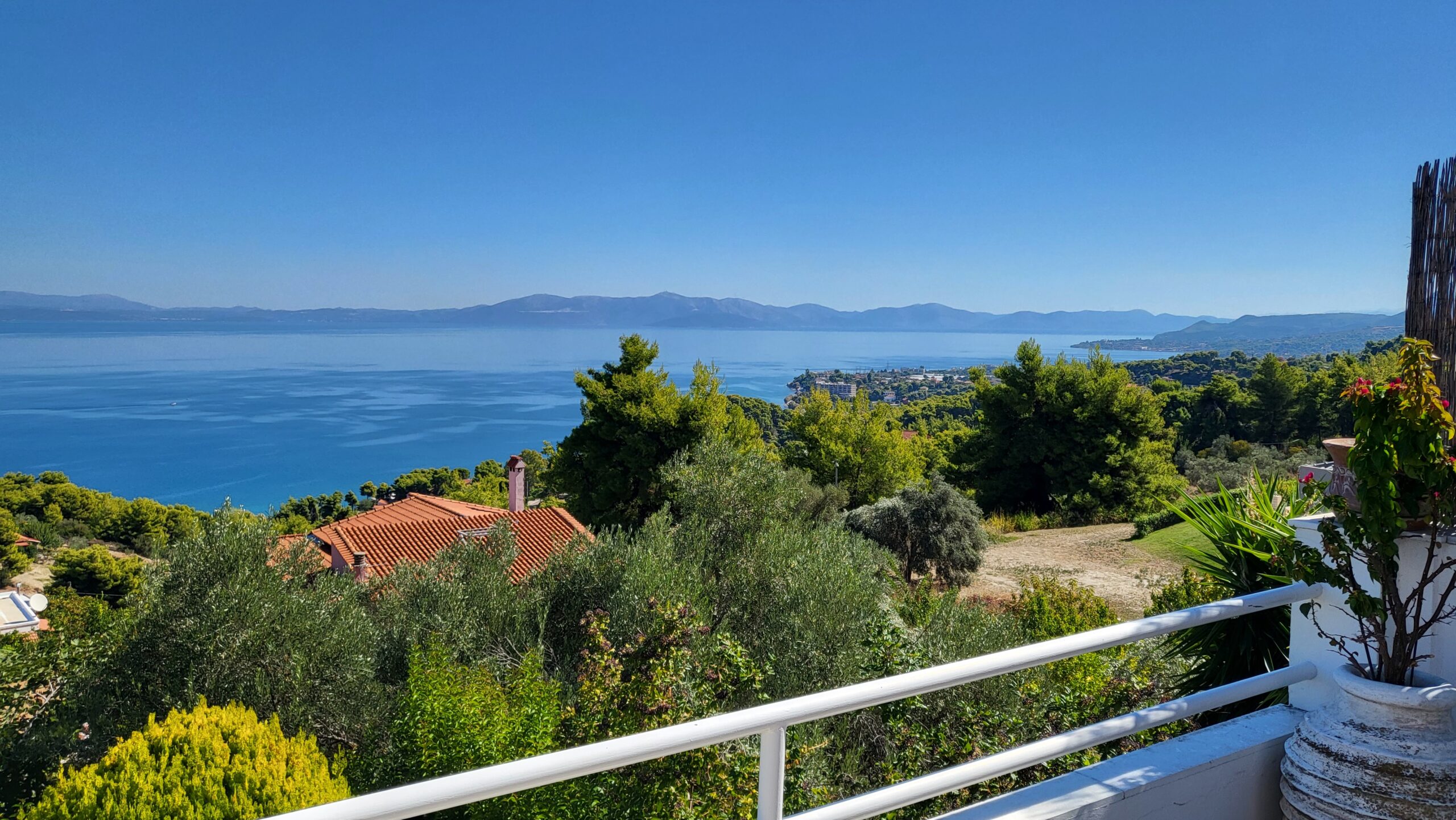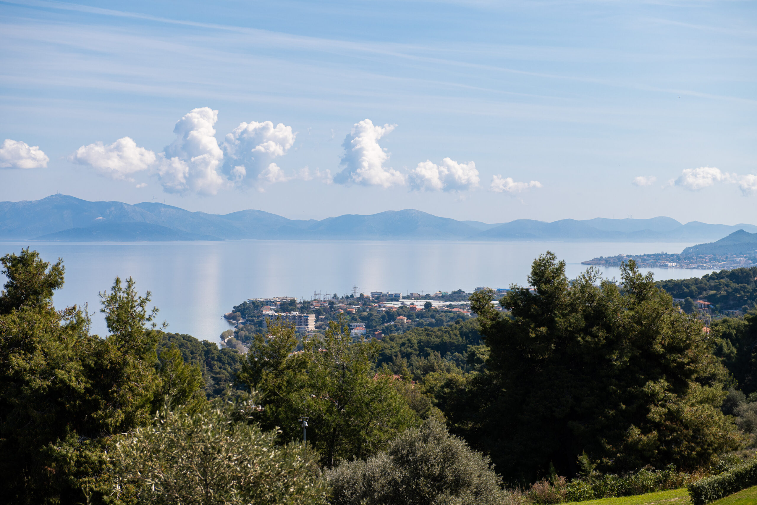Perched at the highest point of the lush “Meteora” settlement in Kalamos, Attica, with a beautiful forest at its back and at the same time just 800 meters from the beach, the villa offers breathtaking panoramic views over the Evoikos Gulf. Surrender to the positive aura of this hidden paradise and experience a relaxing escape that will remain unforgettable.