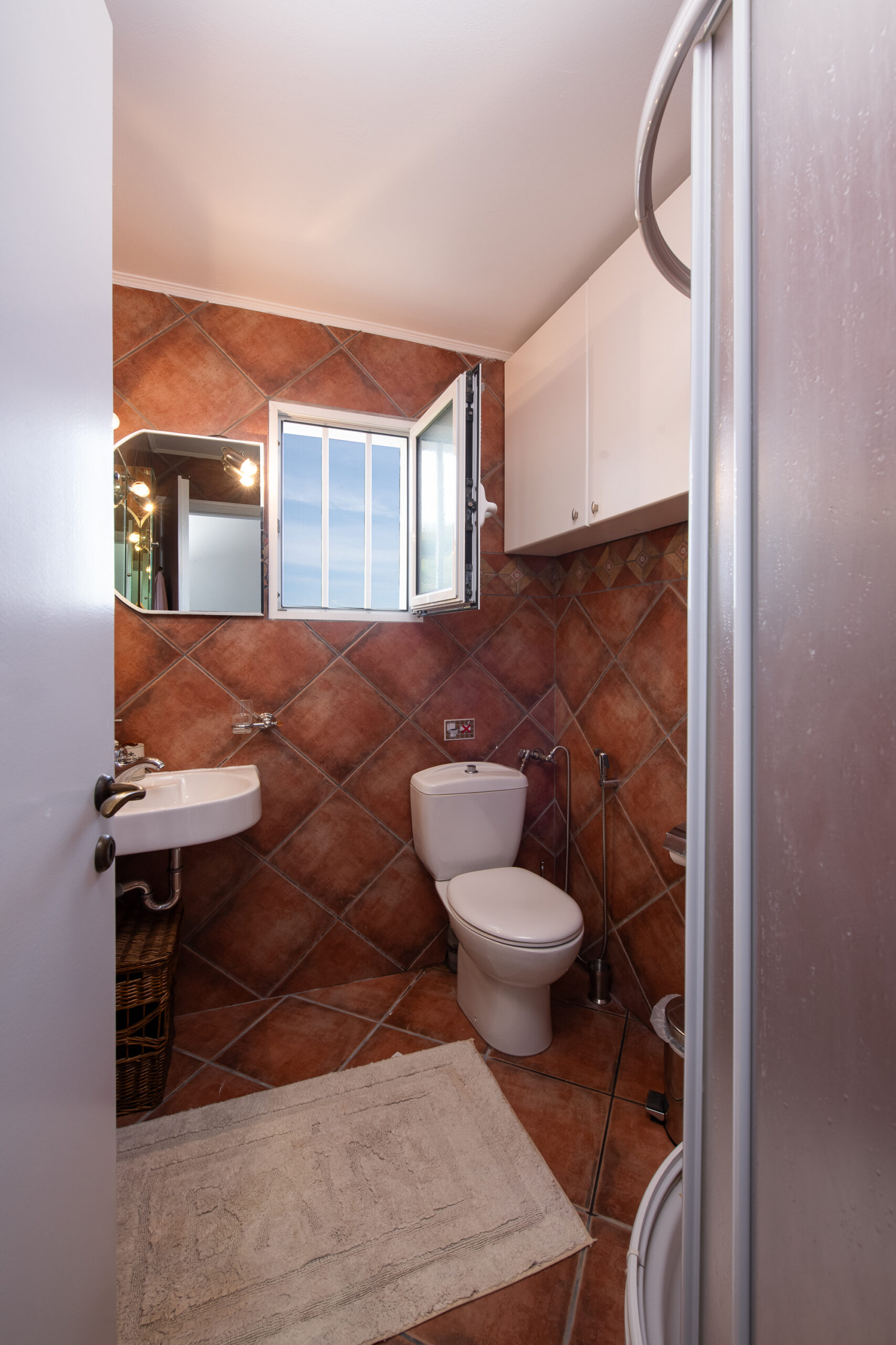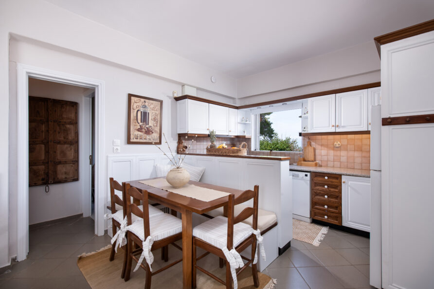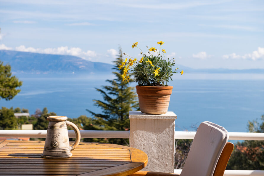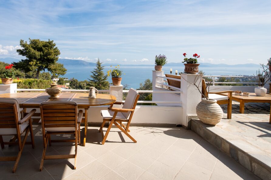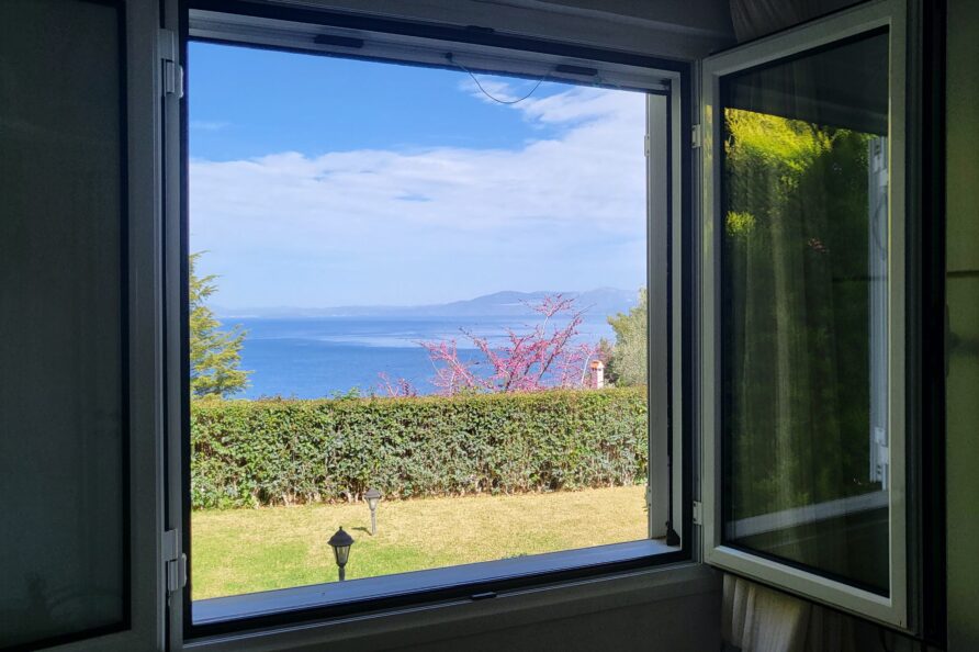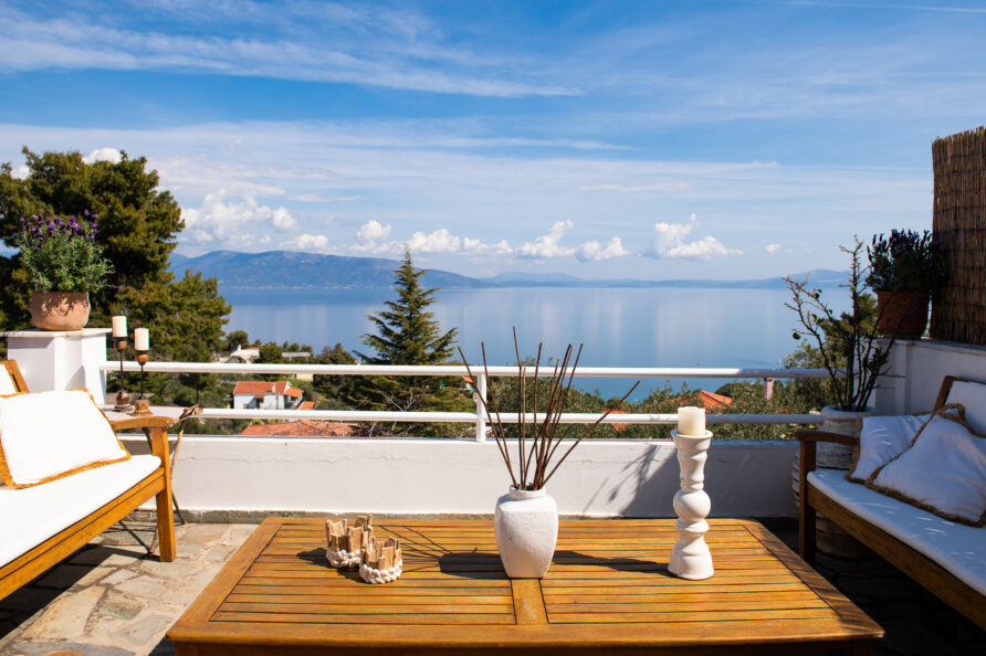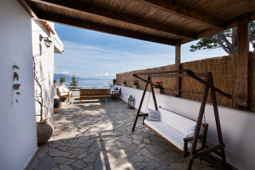 SeaBreeze Villa consists of 2 bedrooms (1 with a double bed and 1 with two single beds), a spacious living and dining area, a fully equipped kitchen, a bathroom with a shower and hydromassage column, and an outdoor shower with hot water. The impressive “panoramic” veranda invites you to enjoy the sun and the sea breeze while gazing at the ever-changing colors of the sea and the horizon.